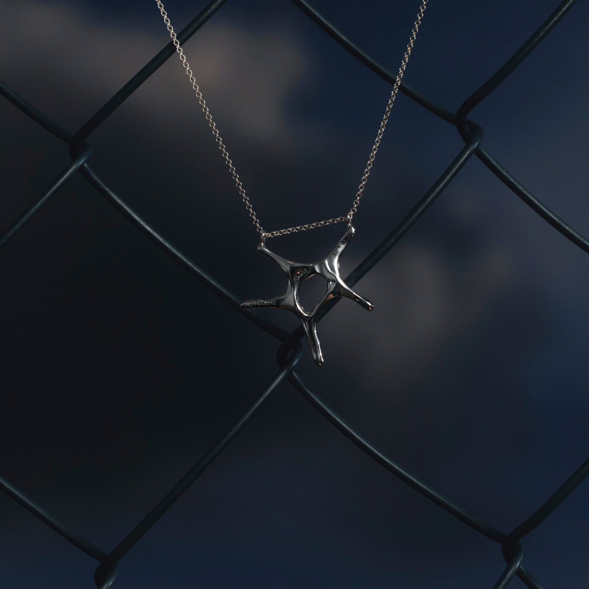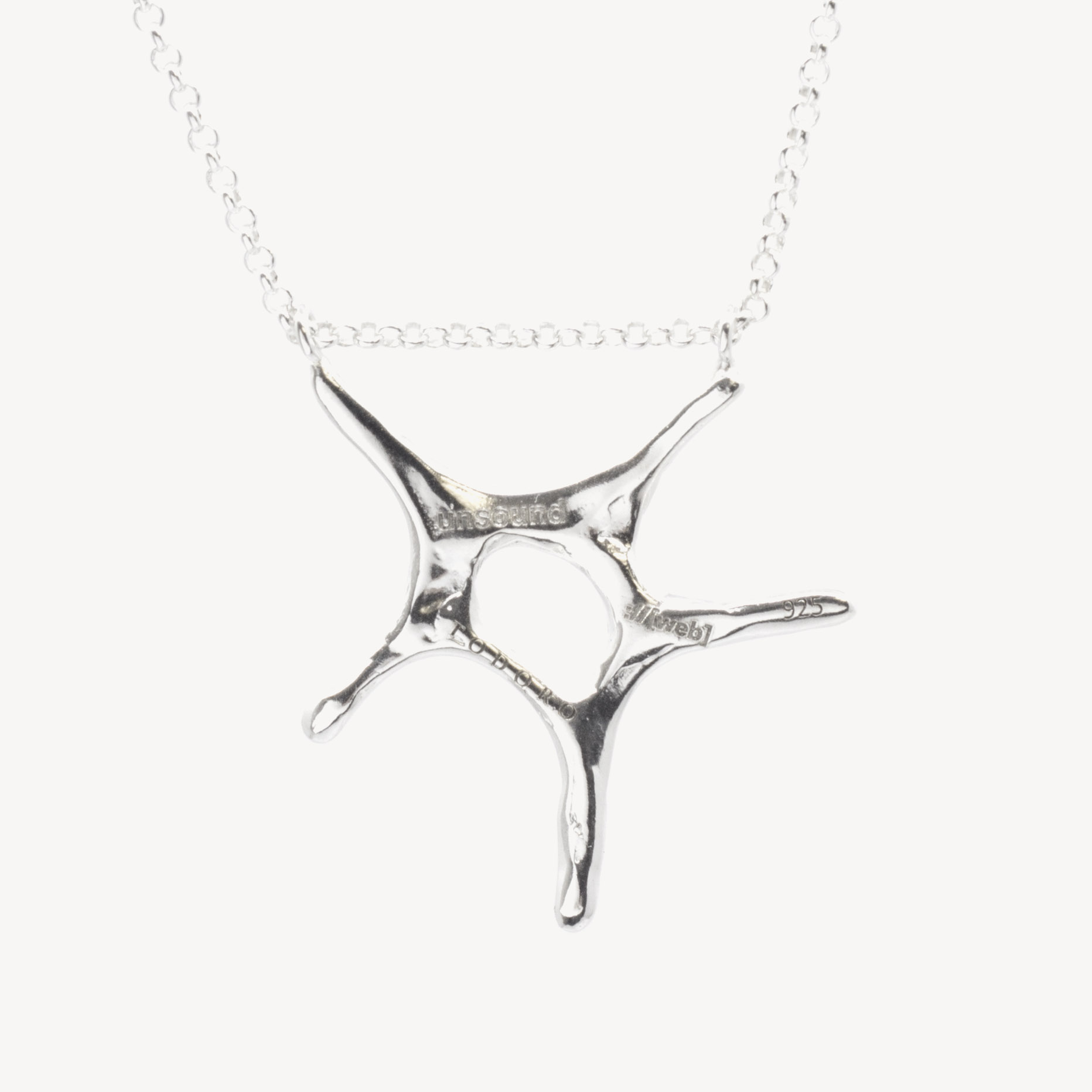 Handmade silver pendant on a 50 cm long chain. Part of the jewelry collection created with UNSOUND Festival, celebrating this year’s edition – ://[web].
