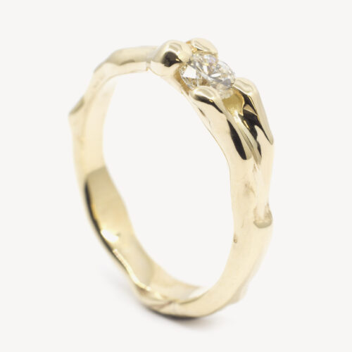 Złoto 585, diament centralny 0,035 ct, diamenty boczne 0,108 ct
