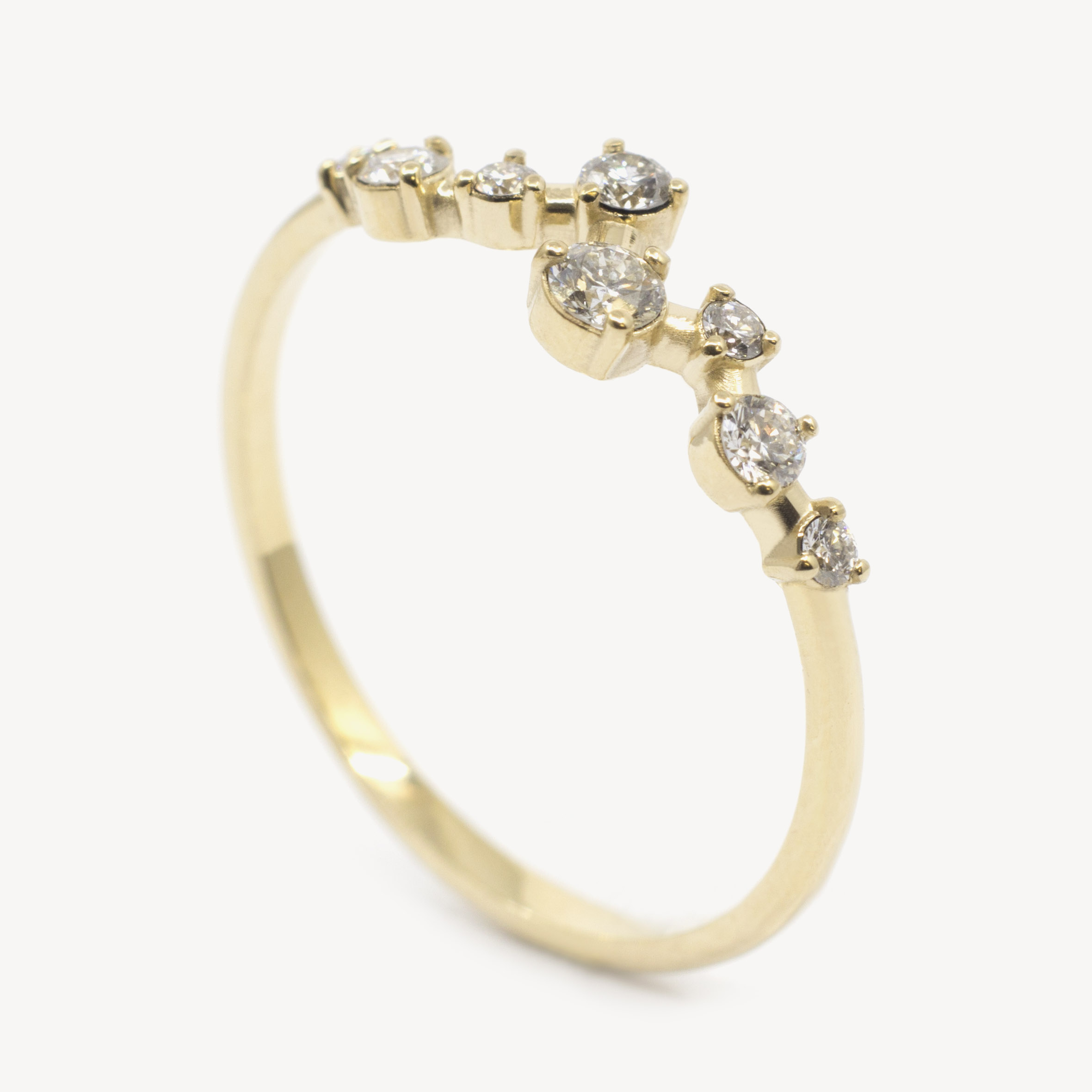 Ręcznie wykonany złoty pierścionek z diamentami.