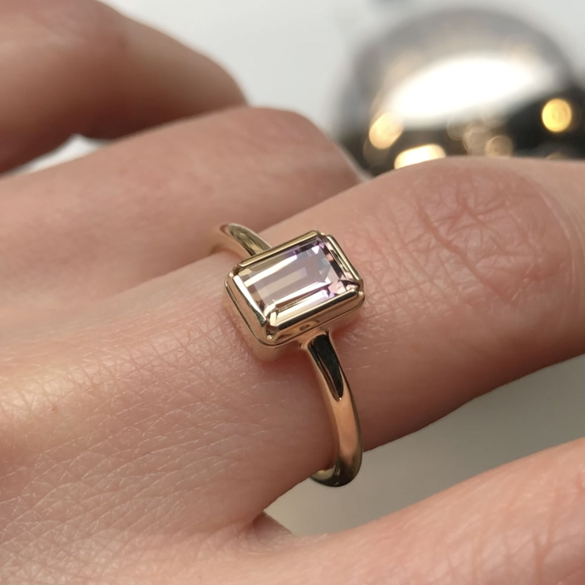 Pierścionek wykonany ze złota próby 585 z ametrynem.