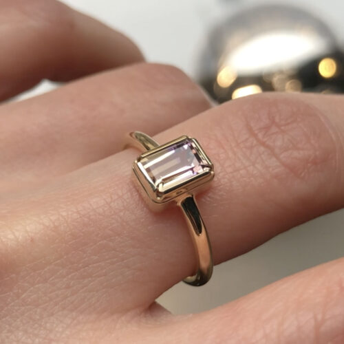 Ręcznie robiony złoty pierścionek ze spinelem.