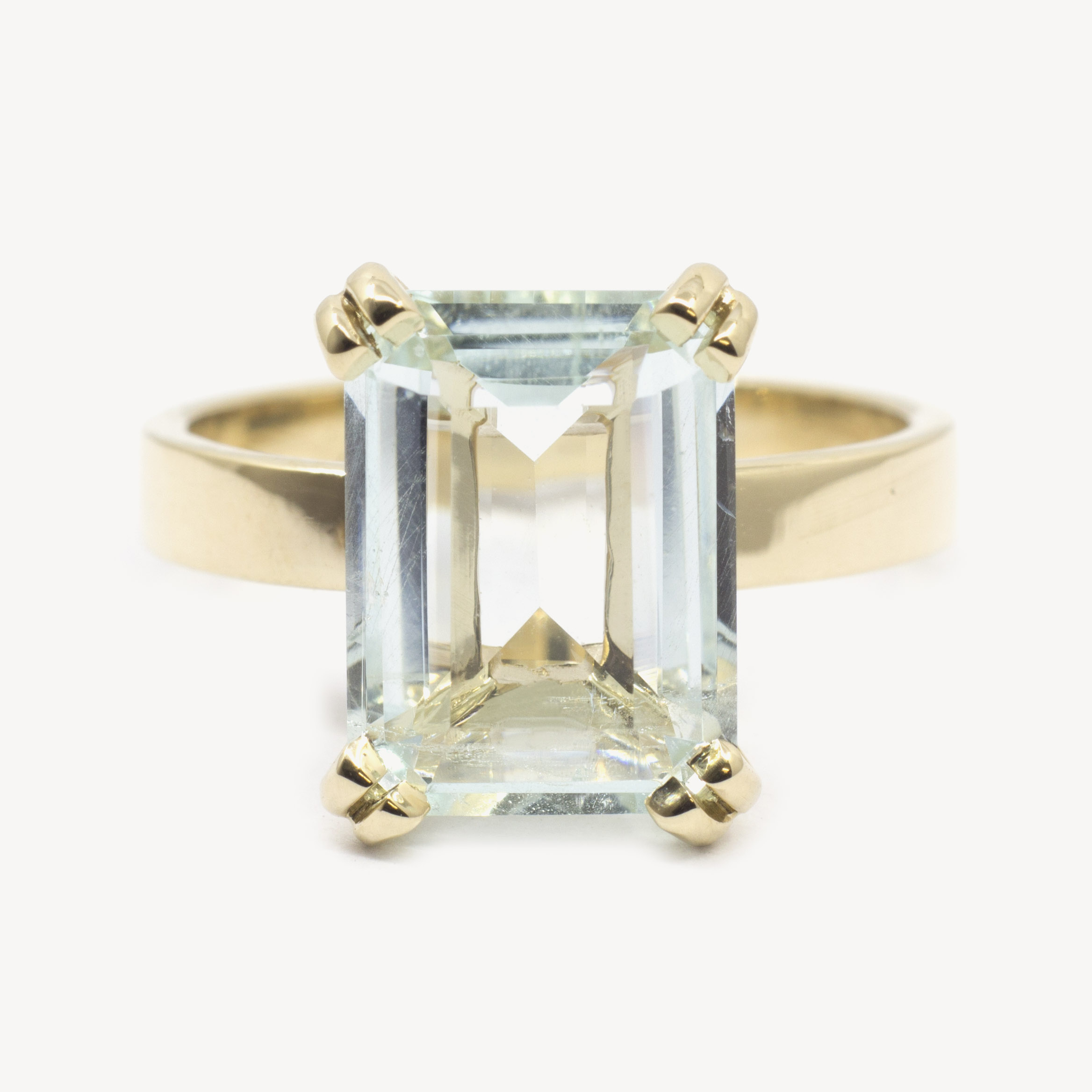 Ręcznie wykonany, złoty pierścionek z akwamarynem.