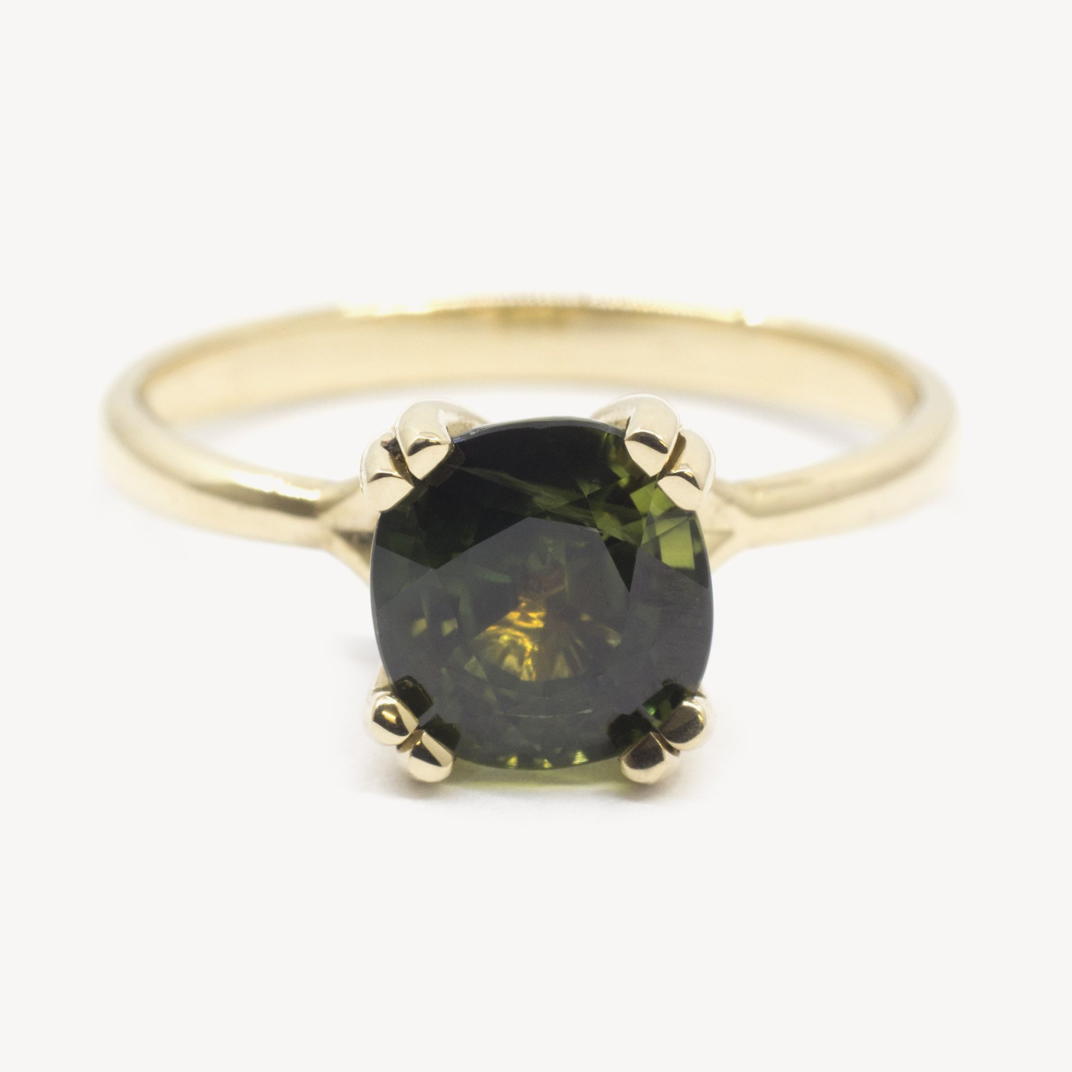 Ręcznie wykonany, złoty pierścionek z szafirem.
