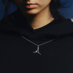 Ręcznie wykonana srebrna zawieszka na srebrnym łańcuszku o długości 50 cm. Element kolekcji biżuterii stworzonej z UNSOUND, z okazji tegorocznej edycji festiwalu – ://[web].