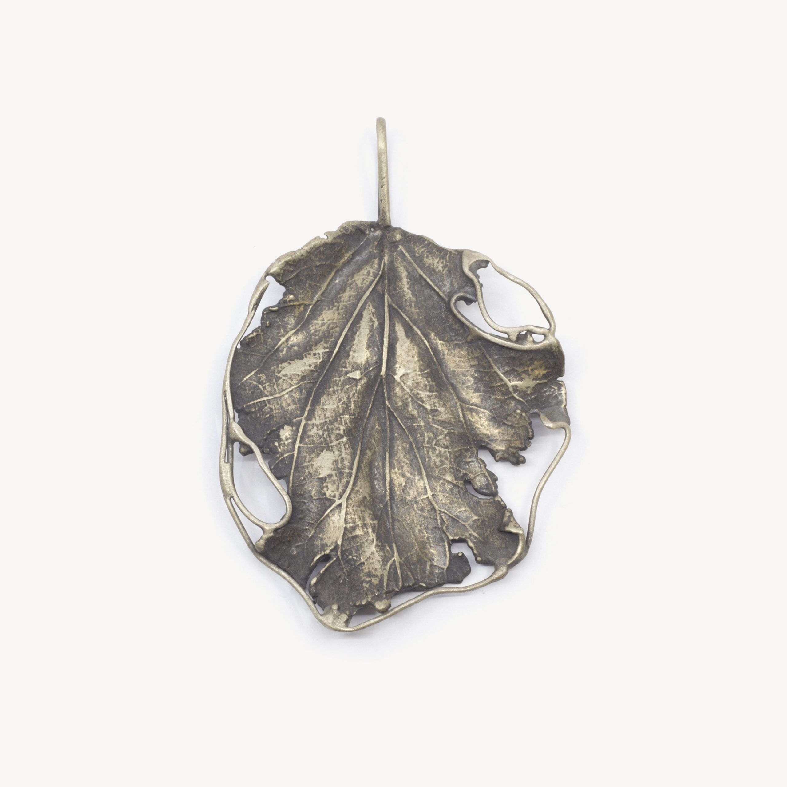 Zawieszka wykonana jest ze srebra próby 925 oraz naturalnego liścia zatopionego w szlachetnym metalu.